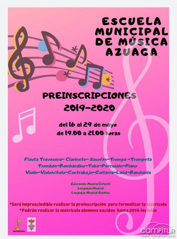 El próximo 29 de mayo, miércoles, se cierra el plazo para presentar las preinscripciones para la Escuela de Música de Azuaga.